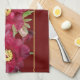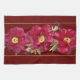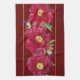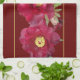 Red Peony with Foliage on Dark Red Background kitchen towel