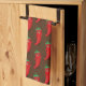 Red Pepper Diva Cartoon Pattern On Brown Tea Towel