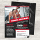A professional flyer design great for fitness coaching and personal training services for women. Whether you help people with weight loss, strength training, nutrition meal planning and coach exercise classes and fitness boot camps, this is a great flyer to advertise your services and classes. There is also room for a motivational quote on the back. The design has a black grunge background and if the red doesn't work for you, all the areas of red can be changed to another colour in the Editor.