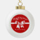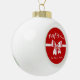 Red and white personalised Christmas ball ornaments in a shape of snowflake with bow and customisable text