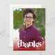Make sure your favourite grad shows appreciation to all who supported their milestone event! Send out this stunning, simple, modern, personalised photo thank you postcard. Bold, graphic, white typography and a brick red gradation overlay a photo of your choice. On the front, personalise the custom text with your grad’s name and class year. Add a personalised note on the back in soft grey typography, under the brick red cap icon. Guaranteed to add a stylish touch to their correspondence! Matching announcements, address labels, yard signs, banners, cap toppers, napkins, plates and other graduation goodies are also available in this trendy and elegant collection. Guaranteed to add stylish fun to their special occasion!