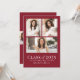 A simple and elegant graduation announcement designed with a bold red background on both sides for a striking, modern look. This rich red tone can also be considered maroon or crimson, and the shade can be easily adjusted to match school colors or personal style. Both the front and back feature photo collages that keep the design polished and timeless.