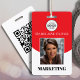 Stand out with this vibrant red employee name badge, featuring a customisable photo, logo space, and name with department details. Ideal for marketing professionals or any corporate setting, this sleek design offers a bold yet professional look. Perfectly customisable with your photo, logo, QR code and text for conferences, offices, or events!