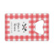 Celebrate the grill loving couple with this sleek red picnic gingham patterned flat credit card style bottle opener or give out s party favours at an I Do BBQ party. Personalise the text to suit your party details with flexible text boxes or change even more about the design using the customise further link.