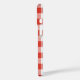 This phone case features a classic red and white plaid pattern, as you might find at a picnic! Near the bottom of the case, you can add your own name or short message in a diagonal black font.