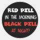 Red Pill in the Morning - Black Pill at Night _x005F_x000D_ Great gift for the older generation or any who can't master pill sorter boxes! The text & colours are switched just like what my gramps does with his meds! Humourous buttons, magnets, shirts & gifts for doctors, nurses, medical students, etc. Graphic on shirts, tees, tote bags & many gifts!