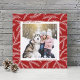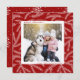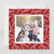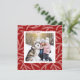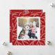 Christmas | Holiday Photo Square Card on a Red and White Pine Branch Pattern Background and a Christmas Tree Pattern on the Back.