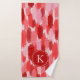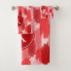 Red Pink Abstract Brushstrokes Pattern Monogram Bath Towel Set