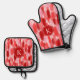 Red Pink Abstract Brushstrokes Pattern Monogram Oven Mitt & Pot Holder Set