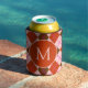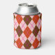 Red Pink and Brown Argyle Pattern Monogram Can Cooler