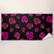 Red Pink and Magenta Roses on Black Background Beach Towel