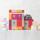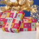 Wrap your gifts with this retro-style, textural type in bright, colorful combination wrapping paper and spread modern holiday cheer this season. This pattern features squares of aqua blue, mustard yellow, blush, red, fuchsia pink and purple and gives a little graphic punch to your pile of presents under the tree.
