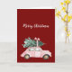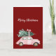 Red Pink Car Christmas Tree Card