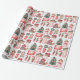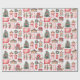Red Pink Christmas Tree Wreath Pattern Wrapping Paper