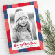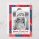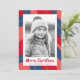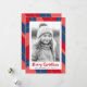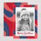 Red pink dark blue retro merry Christmas photo Holiday Card