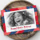 Merry Christmas card in red, pink and dark blue with your custom photo and greeting. Default text: Happy Winter Holidays