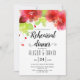Lovely bouquet with ethereal red and pink flowers and cursive script handwritten calligraphy floral spring wedding rehearsal dinner invitation. The upper part is covered with a pretty bouquet of red delicate flowers with green leaves.