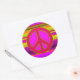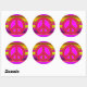 Red Pink Fractal & Peace Sign Classic Round Sticker