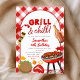 Red Pink Gingham Birthday BBQ invitation, Grill and Chill Birthday Invite, Editable Barbecue Grill Birthday Invite