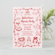 Editable Color Red Pink Girly Hand Drawn Galentine's Day Pajama Party Invitation.