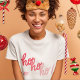Red Pink Hohoho Joyeux Noel Typography Funny T-Shirt