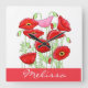 Red Pink Poppies Art Custom Name Personalised Square Wall Clock