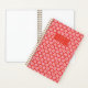 This spiral notebook features an allover tossed daisy pattern in bright pink on a bold red background — fun, graphic, and very retro. "NOTES" sits in a centred label at the top with a personalised name underneath in clean lowercase lettering. The gold spiral binding adds a warm finishing touch. A great pick for a teen, a back-to-school gift, or anyone who likes their desk supplies to make a statement.