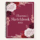 Modern Romantic Roses Personalised Name Sketchbook featuring elegant pink and red rose corner borders on a white frame and pink background. The custom script typography name template can be personalised with an artists name. To add more text or change the font style / colour press the customise further button.