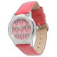 Watch features an original marker illustration of a row of red strawberries, on a pink background.