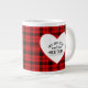 Some days, a regular size cup of joe just won’t do. When you need that extra jolt of caffeine, reach for your extra-large Red Plaid All For Love Giant Coffee Mug.