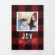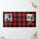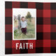 This beautiful tri-fold design features a red and black buffalo plaid background and bold typography. The greeting on the front cover says simply "joy to all" and continues inside with "faith" and "family". As you open the first panel you see a single square photo with your main holiday text. As you fully open the card you see one photo on the left, one photo on the right, and in the middle are three smaller square photos each with personalised text. The back of the card is blank but you could easily add another photo or more text. This design is a perfect choice for a warm, heartfelt message of Christmas joy. The multi-photo layout allows you to upload a total of SEVEN of your favourite family photos in various sizes.