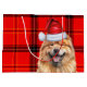 How cute is this little Chow Chow in his or her red Santa cap against a great red and black seasonal plaid patterned background, making this holiday season gift bag perfect for the Chow mum or dog lover.