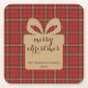 Red Plaid Christmas Festive Pattern - Square Paper Coaster