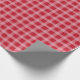 This is a roll of holiday wrapping paper in classic festive red with a simple white plaid pattern.
