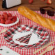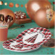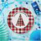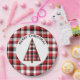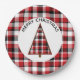 These holiday Christmas paper plates feature a red, white and black plaid for the background. A white circle appears in the centre where a red, white and black plaid Christmas tree resides. This design will add a vintage flair to your holiday table. Copyright Kathy Henis