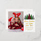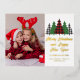Red Plaid Christmas Trees Family Photo Gold Foil Holiday Postcard