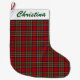 Red Plaid Design Christmas Stocking with customisable personalisation on front and back
