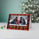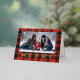 This cozy red plaid holiday greeting card features your family or friends photo, with "MERRY" in a gold font underneath. The plaid design is also on the back. On the inside, there's a customizable greeting that says "Sending you warm wishes for the holiday season and beyond."