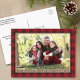 Red Buffalo Plaid Family Photo Merry Christmas Kraft Holiday Postcard