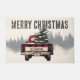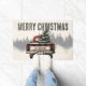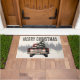 Red Plaid Merry Christmas Truck Custom Family Name Doormat