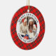 Red Plaid Modern Simple Christmas Family 2 Photo Ceramic Tree Decoration