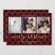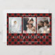 Red plaid Christmas card featuring 3 of your photos. Easy to personalise with your names and year.