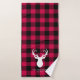 Red Plaid Pattern and Deer Christmas Bath Towel Set