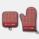 Red Plaid Pattern Funny Now We're Cooking Oven Mitt & Pot Holder Set