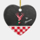 Red Plaid Reindeer Chalkboard Family Name Ceramic Tree Decoration