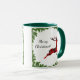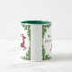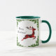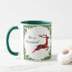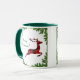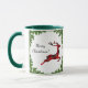 This festive and colourful Christmas holiday coffee mug features a festive red plaid flying reindeer framed in sprigs of bright evergreen branches. Perfect for your Christmas holiday celebration! Personalise it with your own Holiday greeting!
