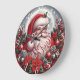 This vibrant Christmas clock features a jolly Santa Claus with a full white beard and traditional red suit, set against a large full moon and a snowy, starry night. He is surrounded by a rich border of red plaid, pine sprigs, poinsettias, and pinecones. The image is highly decorative and festive, incorporating traditional holiday elements with a detailed, three-dimensional style. The design may look real due to the high detail and three-dimensional texture in the artwork.