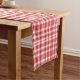 Table runner to accent your table decor is shown in a lovely red plaid print.