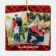 Red Plaid Tartan Christmas 2 Family Photo Ceramic Ornament