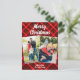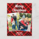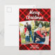 Red Plaid Tartan Merry Christmas 2 Family Photo Holiday Postcard